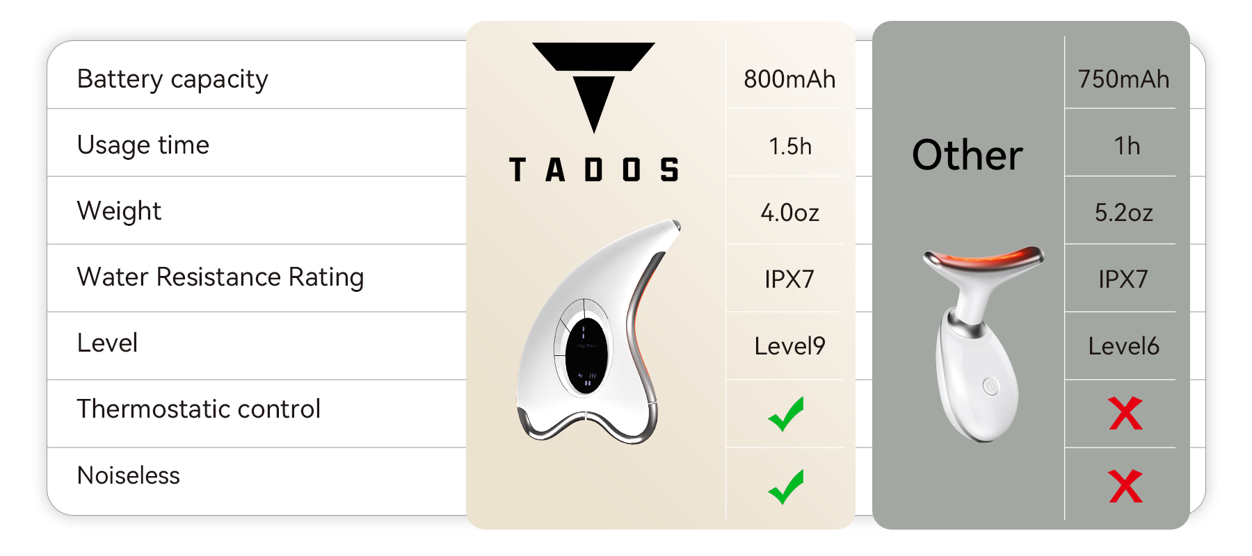 Tados is equipped with a high-performance battery, delivering up to 70 minutes of long-lasting power. Free from charging cables, you can enjoy multiple full skincare sessions anywhere—at home or on the go. Reliable battery life ensures your beauty routine stays uninterrupted without frequent recharging.