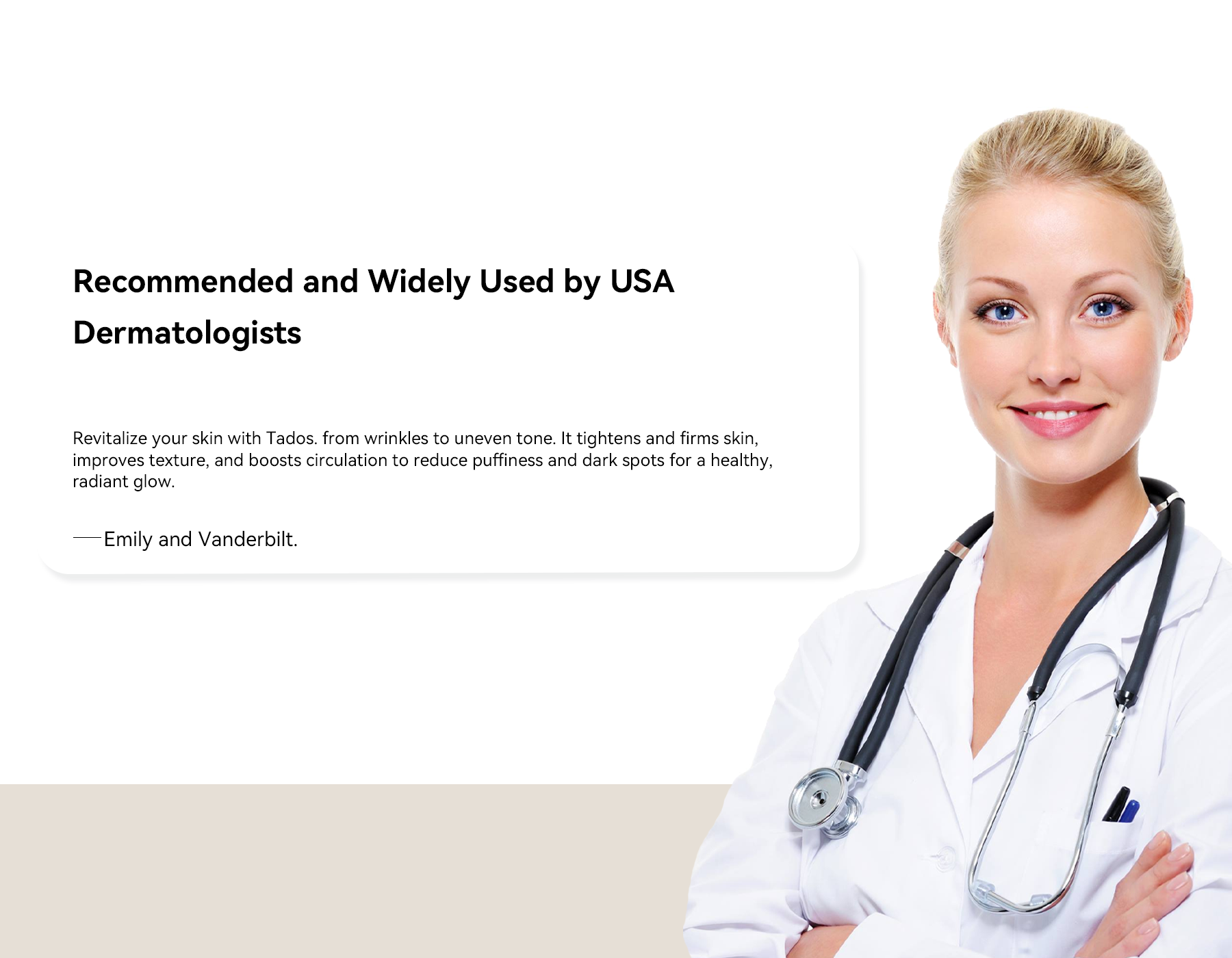 The story of Tados began with a husband named Michael Evans. Every day, he noticed his wife’s skin losing its glow and firmness from the stress of work and daily life, and it worried him deeply. Tired of complicated and ineffective skincare routines, Michael decided to create a simple, effective solution for her.
